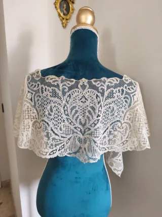 Antigua mantilla de pico, de origen francés y bordada a mano. Muy bien conservada. Medidas: 150×73 cm.
