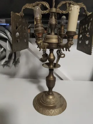 Elegante candelabro de bronce con un diseño clásico y ornamentado. Ideal para añadir un toque de distinción a cualquier espacio. - Fabricado en bronce. - Base circular con detalles grabados. - Múltiples brazos para velas.