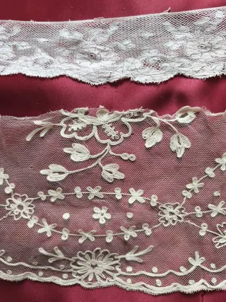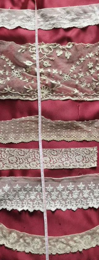 Tal cual fotografías. Hay algo más de 6 metros en varios metrajes aunque solo vendo el encaje al completo.