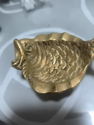 Original cenicero vintage con forma de pez. - Fabricado en bronce. - Diseño detallado con escamas y aletas. - Aporta un toque retro a cualquier espacio. Medidas 12 por 8 cm