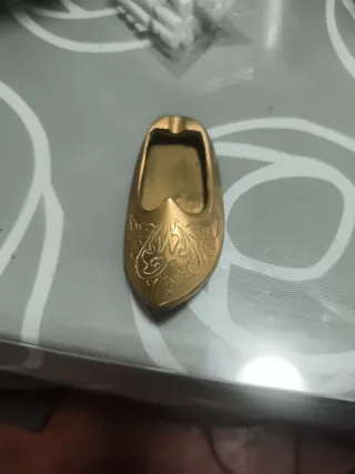 Original cenicero con un diseño único en forma de zapato, fabricado en bronce. Un detalle decorativo con un toque vintage. - Material: Bronce. - Diseño: Zapato con grabados ornamentales.