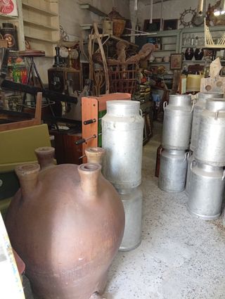Se venden varias antigüedades. Son piezas únicas con encanto rústico. - Incluyen varias lecheras metálicas de distintos tamaños. - También hay una gran vasija de barro. y muchas cosas antiguas