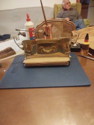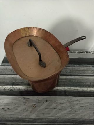 Pieza antigua de cobre con mango de hierro forjado. Z,16 cm alto, 7 base aprox .a sido restaurada - Material: Cobre y hierro forjado. - Diseño tradicional.