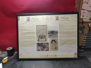 Marco con láminas de Juan Oliva, reconocido dibujante miden 84x64 y oteas 84x54 centimetros, los marcos presentas desgaste pero esta la lamina en buen estado, 25 euros undidad. - Incluye varias publicaciones y anuncios. - Muestra trabajos de los estudios y escuela de Juan Oliva. - Presenta un diseño retro y artístico.