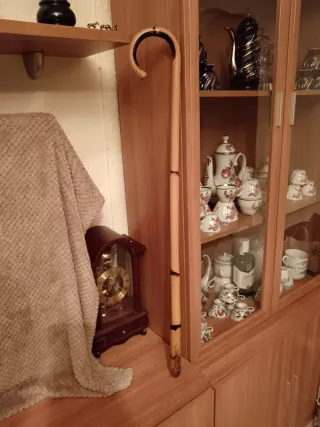 Elegante bastón de madera con un diseño clásico. Forma de hasta de ciervo - Empuñadura curva. - Caña de madera oscura. - Punta de goma negra.
