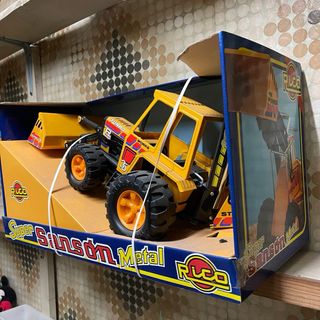 Retroexcavadora de juguete Super Sansón de la marca Rico. Un clásico de los vehículos de construcción. NUEVO A ESTRENAR Medida de la caja 50cm - Diseño llamativo en color amarillo. - Detalles de DANGER y WORKS en el cucharón y la cabina. - Ruedas grandes y robustas. - Incluye la caja original.