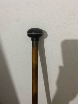 Elegante bastón de caballero, una pieza antigua con un diseño clásico. - Empuñadura redonda de color negro. - Caña de madera con acabado pulido. Antiguo antigüedades, decoración, colección coleccionista, coleccionismo, Tinaja, vasijas, mesas, sillas, muebles, madera, bronce, metal, mortero, molinillo antiguo Antigüedades, decoración, colección coleccionista, coleccionismo