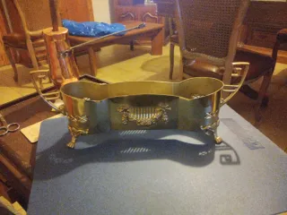 Elegante centro de mesa de estilo Imperio, con un acabado en metal dorado.esta restaurado, 33 cm largo, 12 alto,7 ancho aprox. - Diseño clásico y ornamentado. - Patas con detalles. - Aporta un toque de distinción a cualquier espacio.