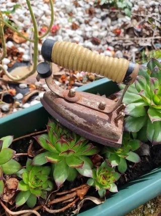 Plancha antigua de hierro, ideal para coleccionistas o como elemento decorativo. - Material: Hierro fundido. - Diseño clásico y robusto. Bueno el mango no sé exactamente de qué es bueno cuando me preguntan en qué estado no tengo muy claro lo que voy a poner porque esto es para adorno.