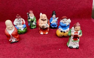 Conjunto de 7 figuras de porcelana de los Budas de la Suerte. - Figuras detalladas de porcelana. - Representan a los Budas de la Suerte.