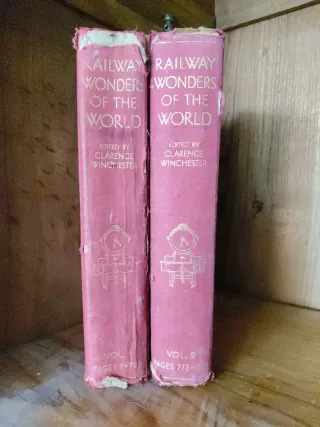 Conjunto de dos libros Railway Wonders of the World, editados por Clarence Winchester.