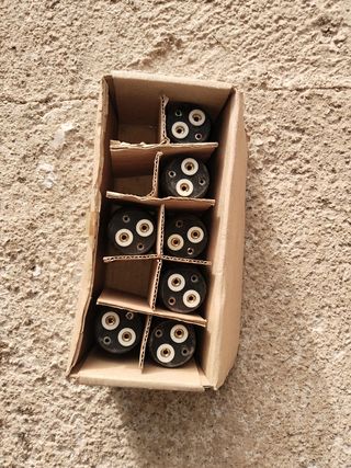 Lote de enchufes de goma negros, ideales para proyectos eléctricos o de restauración. - Material: Goma y cerámica. - Color: Negro con detalles en blanco/cerámica. - Diseño: Redondo con tres orificios. - Precio 3 euros unidad.