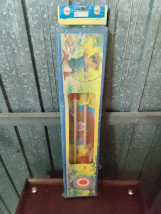 Juguete clásico de arco y flechas, ideal para coleccionistas o para revivir la nostalgia. - Diseño con personaje de dibujos animados. - Incluye arco y flechas. Se envía mediante Wallapop