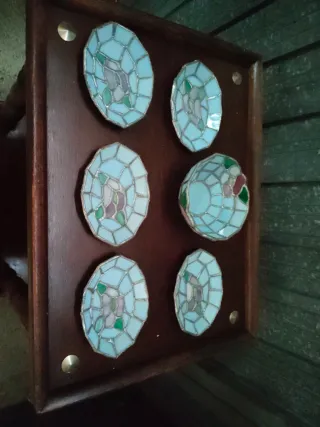 Vintage, perfecto estado. - Diseño de vidriera. - Tonos azules, verdes y morados. - Cristal emplomado Se envía mediante Wallapop