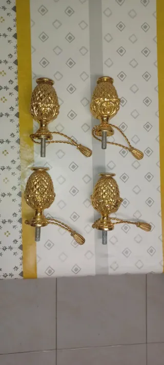 Conjunto de cuatro piñas decorativas de bronce con un diseño antiguo y elegante. Perfectas para añadir un toque clásico a tu hogar. La unidad 50€ si te llevas las 4 te las llevas a 150€ las 4 - Material: Bronce - Acabado: Dorado - Diseño: Piña - Incluye: 4 unidades