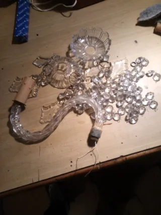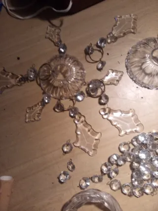 Piezas de cristal para lámparas antiguas. - Componentes de cristal tallado. - Incluye cuentas y elementos decorativos. - Ideal para restaurar lámparas clásicas.