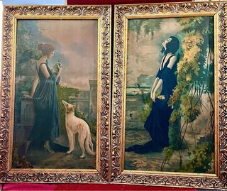 Excelente pareja de cuadros art nouveau Lienzo con marcos de madera 89x54 cm