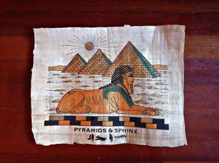 Papiro de la Esfinge. Se trata de una lámina de papiro egipcio hecho a mano y pintado a mano. Medidas aprox. 42x32,5 cm. Se vende sin enmarcar. Ideas regalo, decoración, cuadro, lienzo, antigüedades. Ideal para amantes de la cultura egipcia, pirámides, momia, etc. Lo traje personalmente de Luxor, Egipto, en el 2009. Lo compré en un taller que los hacían a mano y te enseñaban como los hacían.