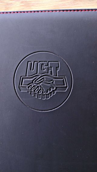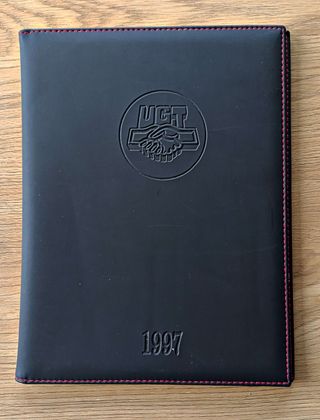 Porta documentos de UGT del año 1997, está en muy buen estado. - Ideal para llevar documentos importantes. - Diseño clásico y elegante. - Perfecto para uso diario. - Color negro. - Medidas: 28cm x 21cm Está tal cual las fotos. Con el bordado en rojo. Ha estado guardado en una caja durante muchos años, está muy bien conservado, nunca se llegó a usar.