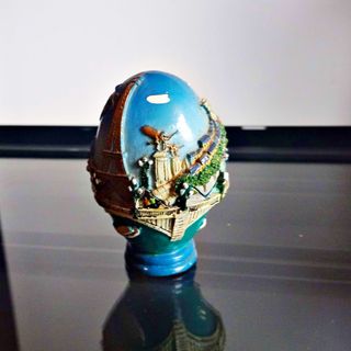 Huevo de colección comprado en Paris, lo traje hace 23 años, en mi primer viaje a Francia. Esta hecho en resina y pintado a mano. En el exterior muestra diferentes monumentos de París, y en su interior al abrirlo se ve la Torre Eiffel con la bandera francesa. Medidas: 7cm alto (huevo cerrado) 5cm diámetro (parte central)