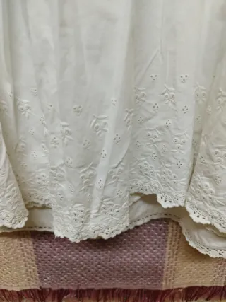 Precioso camisón de estilo victoriano, una pieza antigua con un diseño delicado. - Tejido blanco ligero. - Detalles de encaje en el cuello y mangas. - Volantes y bordados en el bajo.