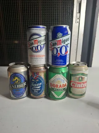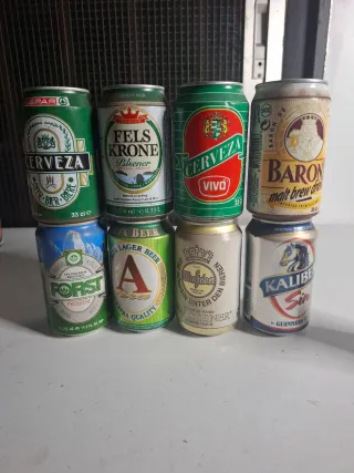 Lote de 14 latas de cerveza antiguas y vacías, perfectas para coleccionistas o decoración. Si quieres alguna suelta escríbeme - Variedad de marcas y diseños. - Ideal para coleccionismo. - Cada lata tiene un diseño único.