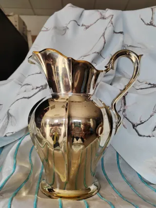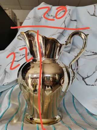 Elegante jarra antigua de alpaca con un diseño clásico y un acabado brillante. En la foto vienen las medidas. - Material: Alpaca - Diseño: Clásico - Acabado: Brillante