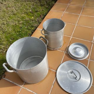 Conjunto de dos lecheras antiguas de aluminio. Grande 90 Pequeña 60