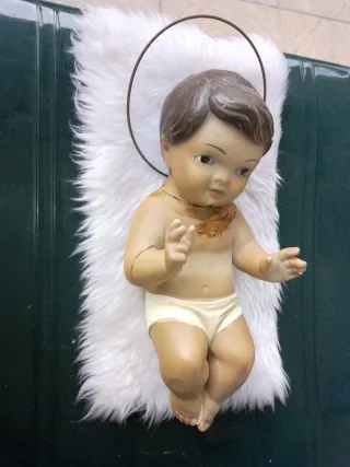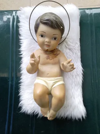 Figura decorativa del Niño Jesús, años 60 ideal para belenes o como adorno. - Material: cerámica pasta de madera o similar. - Detalles pintados a mano. - Incluye halo metálico. - tal como se ve en las fotos. - medidas en las fotos. - peso 600 gr. Arte cartuja pieza llave abridor raro rareza ojo ojear exposición colección coleccionar coleccionista vintage retro artdeco isabelino figura maza jarrón ánfora almirez mortero campana raro rareza bronce cobré moneda navidad papá Noel reyes magos mirar míralo mírala mirarlo mirarla comprar comprarlo compralo comprarla comprala regalar regalo si
