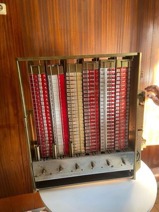 Máquina expendedora antigua de la marca Jofemar. Un modelo clásico con un diseño retro. - Estructura de madera oscura. - Panel frontal de color crema con ventana. - Bisagras y cierres metálicos. preguntar sin compromiso para pasar mas fotos q no me deja subir