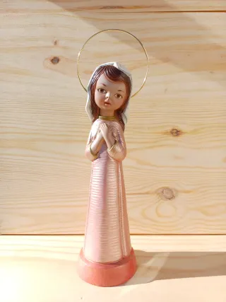 Figura religiosa de la Virgen María, realizada en escayola. Representa a la Virgen con las manos juntas en actitud de oración. - Material: Escayola. - Representación: Virgen María orante. - Base dorada.