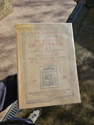 Este es un libro antiguo titulado Antigüedades y Cosas Memorables del Principado de Asturias. - Escrito por el Padre Luis Alfonso de Carvallo. - Obra póstuma dedicada a Don Juan Queypo de Llano y Valdés. - Publicado en Madrid en 1695. - Con licencia de imprenta.