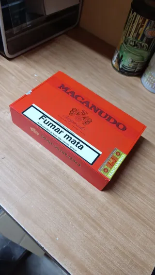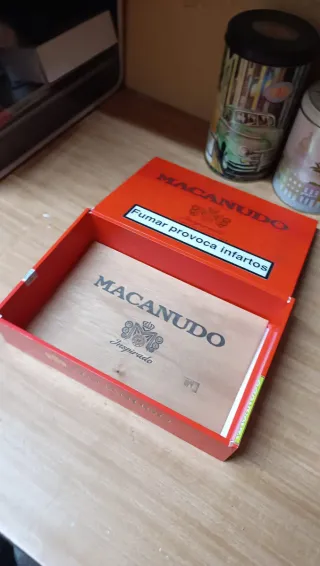 Caja vacía de puros Macanudo. - Color rojo. - Interior de madera. Macanudo inspirado Naranja Gigante. Capacidad para 20 puros tamaño toro.