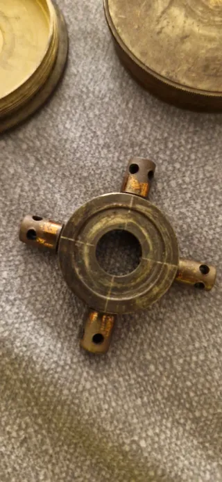 Plato de bronce antiguo con monedas de Alfonso XIII. Las monedas pueden ser de plata aunque no puedo confirmarlo