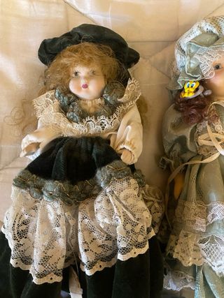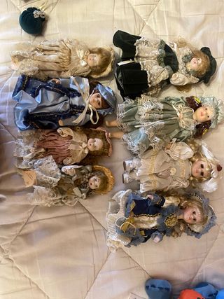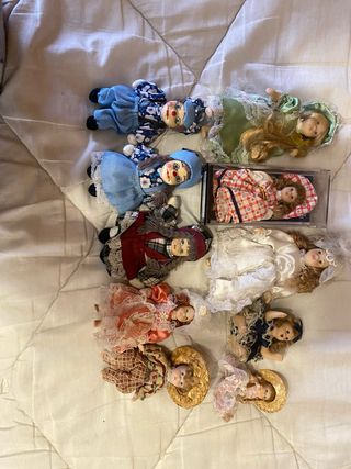 Conjunto de diez muñecas de porcelana con vestimenta detallada. - Muñecas de colección. - Diseños variados. - Ideal para coleccionistas.