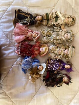 Precio 20 € por unidad, se venden todas juntas. Colección de 30 muñecas de porcelana, cada una vestida con trajes típicos de diferentes culturas. Altura de 20 cm. - Muñecas de porcelana. - Vestidos con trajes tradicionales. - Ideal para coleccionistas.