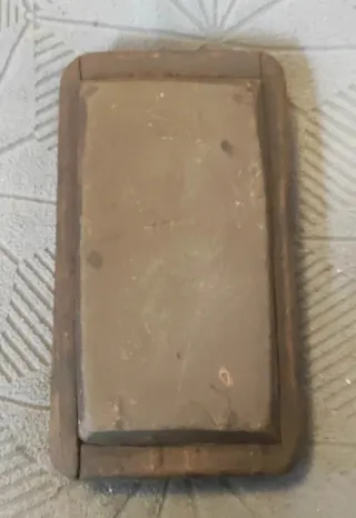Piedra de afilar antigua con marco de madera. - Marco de madera. - Superficie de piedra.