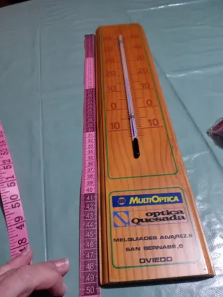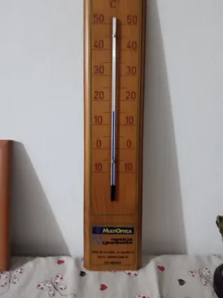 Termómetro de madera con escala en grados Celsius. - Marco de madera. - Escala de temperatura de 0 a 50 °C. - Diseño vintage.