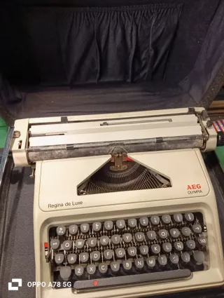Máquina de escribir vintage AEG Regina de Luxe, un clásico para coleccionistas o amantes de lo retro. Conserva su maletín original para su transporte y protección.lleva unos 30 años en el trastero supongo que necesita un poco de aceite o algo no entiendo de estásaquinas la verdad.las he visto de todos los precios desde 175 a 350 euros no sé - Diseño clásico y elegante. - Incluye maletín de transporte.