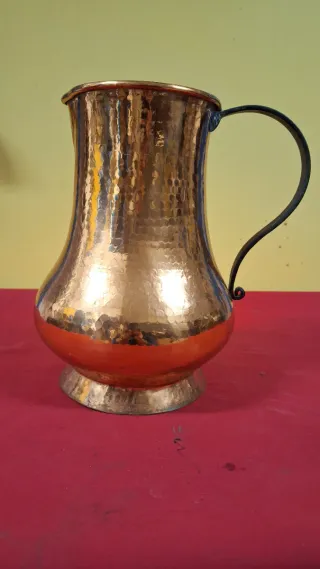 Jarra antigua con un diseño de cobre martillado. - Material: Cobre. - Acabado: Martillado. - Asa de forja Alto : 28 ancho : 25