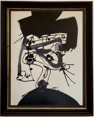 Litografía original de Saura de 1990. Una pieza de arte abstracto en blanco y negro, enmarcada. - Obra gráfica de Antonio Saura. - Firmada y fechada en 1990. - Marco de madera oscura.