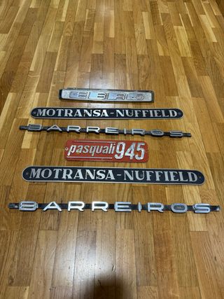 Conjunto de insignias metálicas para tractores. - Insignia Ebro - Insignia Motransa-Nuffield - Insignia Barreiros - Placa Pasquali 945 - Insignia Motransa-Nuffield - Insignia Barreiros # muñeco Michelin # muñeco Bibendum # Michelin # Bibendum # Esso # Decoración antigua # Retro # Atrezo # Taller antiguo # Mobiloil # Shell # Texaco # Gulf # Firestone # Lata aceite antigua # Motor oil # Decoración garaje antiguo # Chapa antigua # # Cartel gasolinera antiguo # # Semáforo antiguo # Surtidor gasolinera antigua #