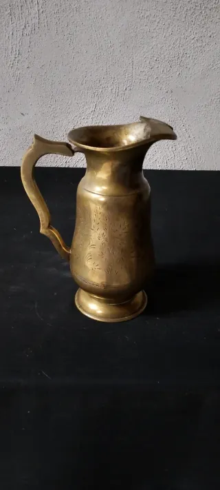 Elegante jarra antigua de metal con un diseño grabado. 25 cm - Material: Metal - Diseño: Grabados florales - Base: Redonda y estable