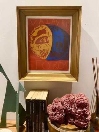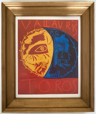 Litografía editorial offset reeditada en 1987 Cartel para corrida de Toros (Picasso a Vallauris, 1951) Editorial Tériade Papel vélin satinado ligero Medidas: 27x21 cm. Marco madera dorado con paspartú blanco mitad del S. XX Medidas: 36x30 cm.