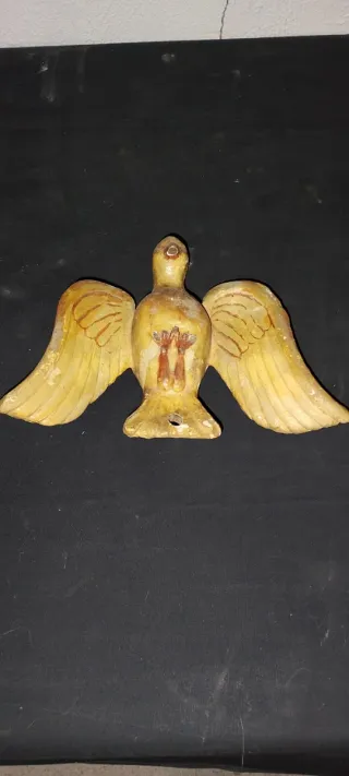 Figura antigua del Espíritu Santo para altar De madera tallada a mano - Diseño de paloma con alas extendidas. - Detalles pintados en el cuerpo.