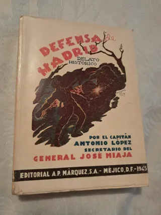Libro Defensa de Madrid con relato histórico. - Escrito por el Capitán Antonio López. - Secretario del General José Miaja. - Editorial A.P. Márquez, S.A. - México, D.F. - 1945. - edición numerada de 3000 ejemplares este es el 2132.