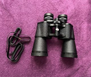 Prismáticos negros con correa para su transporte. - Diseño clásico. - Correa ajustable. Antiguos.