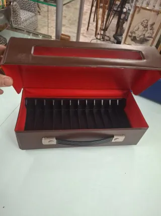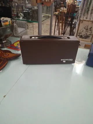 Maletín de estilo vintage para guardar cassettes. Su diseño marrón le da un toque retro. Para 12 casete - Asa superior para facilitar el transporte. - Compartimento para cassettes.