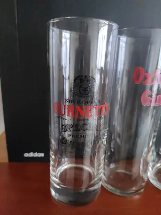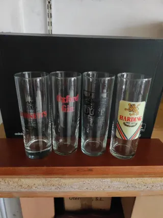 Conjunto de cuatro vasos de colección con motivos de ginebra, ideales para los amantes de lo vintage. - Diseño clásico. - Perfectos para coleccionistas.