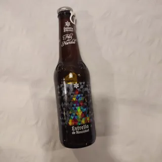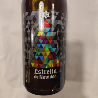 Botella de colección de Estrella Galicia. - Diseño festivo con árbol de Navidad. - Etiqueta con acabado holográfico.
